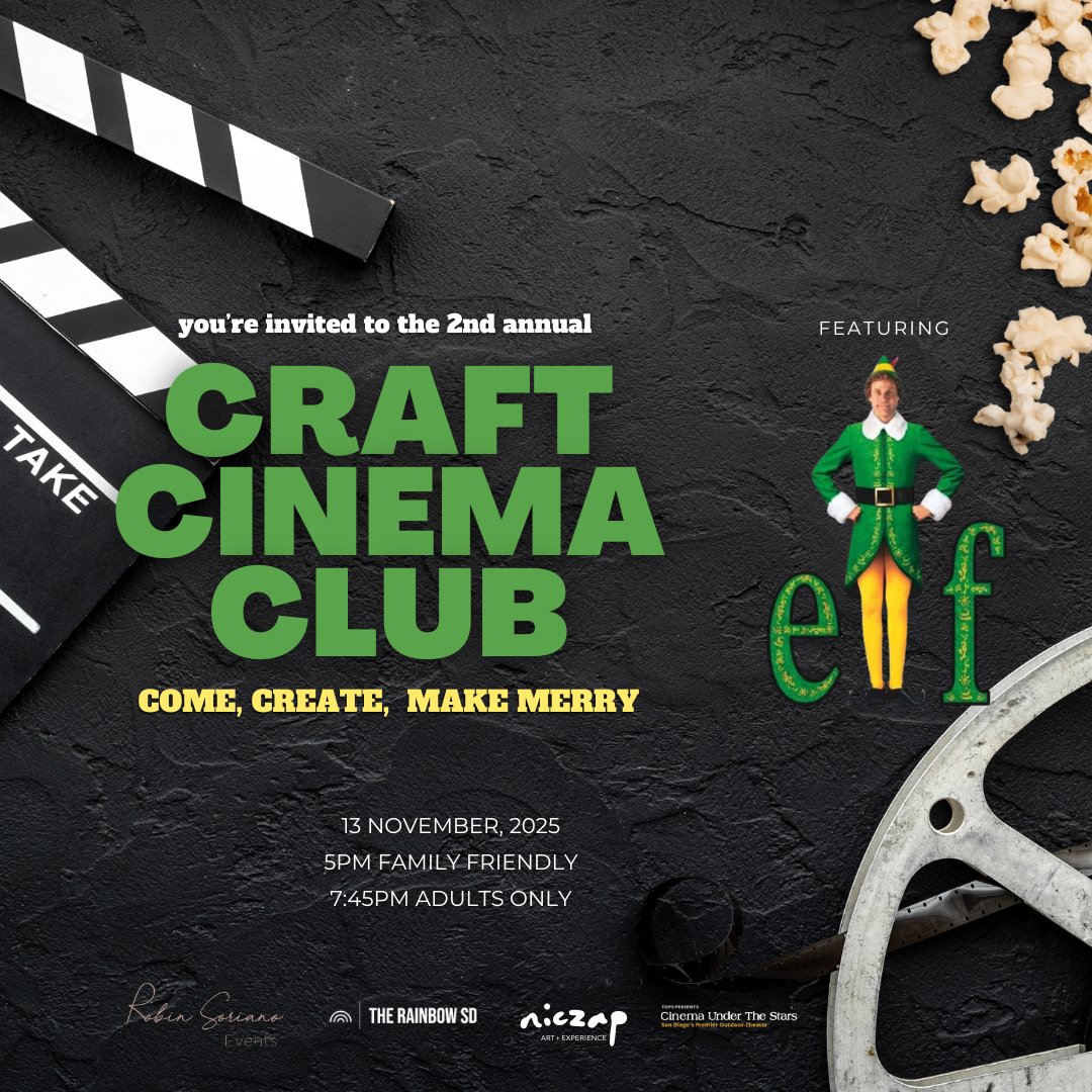 The Rainbow & NicZap Art + Robin Soriano Events are delighted to bring you the 2nd annual Craft Cinema Club ft. Elf!