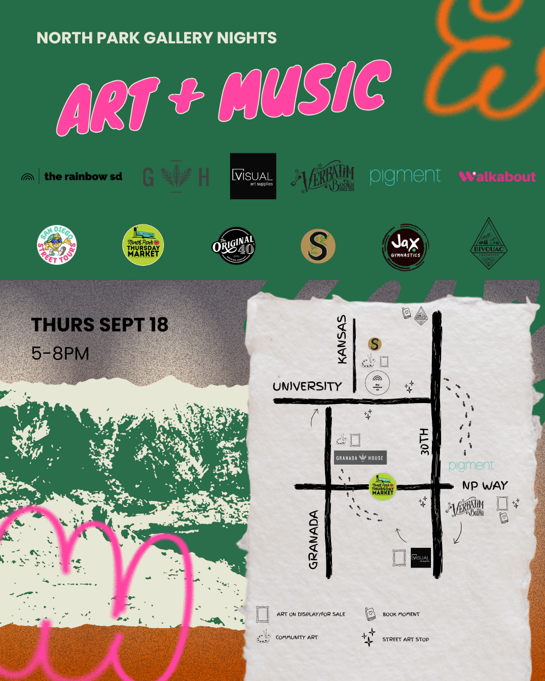 The Rainbow is thrilled to have recently organized the very first North Park Gallery Nights. With no shortage of vibe, connection, energy and art, this first trial run will certainly not be the last of its kind.
